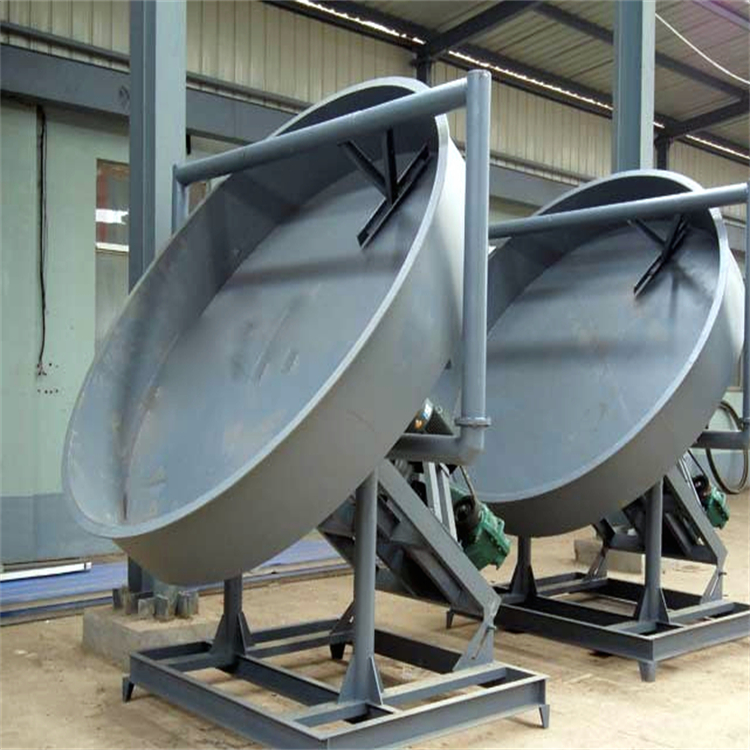 圓盤造粒機的主要工作部件為其造粒盤,設備整體采用的是圓弧結構,成球率高達百分之九十三。造粒盤的角度可以根據(jù)需要進行調(diào)節(jié),范圍在40—60度之間。
