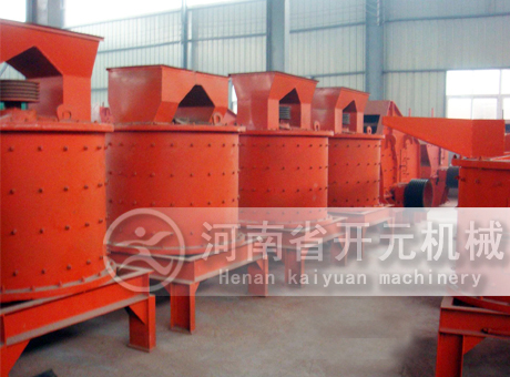 立式復(fù)合破碎機(jī)工作原理:物料由機(jī)器上部垂直落入高速旋轉(zhuǎn)的葉輪內(nèi),在高速離心力的作用下,與另一部分以傘狀形式分流在葉輪。