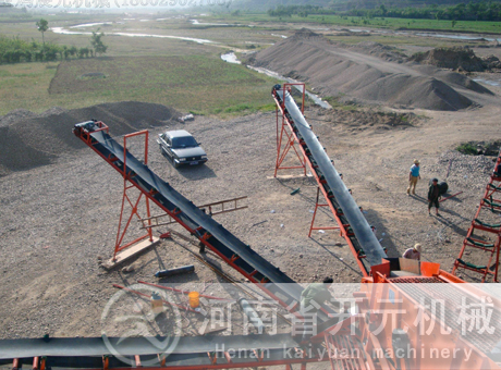 膠帶輸送機(jī)為選礦設(shè)備中的輔助設(shè)備,其作用為輸送物料。我公司生產(chǎn)的膠帶輸送機(jī)具有輸送量大,結(jié)構(gòu)簡單,維修方便,部件標(biāo)準(zhǔn)化等優(yōu)點(diǎn),它廣泛應(yīng)用于礦山,冶金,煤炭等部門,用來輸送松散物料或成件物品,根據(jù)輸送工藝要求,可以單機(jī)輸送,也可多臺(tái)膠帶輸送機(jī)組成或與其它輸送機(jī)設(shè)備組成水平或傾斜的輸送系統(tǒng),以滿足不同布置形式的作業(yè)線需要,膠帶輸送機(jī)可在環(huán)境溫度-20℃至+40℃范圍內(nèi)使用,輸送物料的溫度50℃以下。歡迎廣大客戶前來我公司選購訂做皮帶輸送機(jī)。