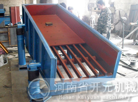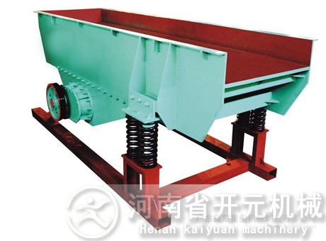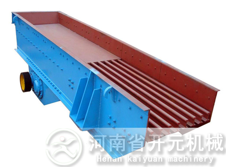 槽式給料機又稱往復式或擺動式給料機,它是貯礦槽排料應(yīng)用較早的一種給料設(shè)備。型式較多,其結(jié)構(gòu)的共同點是均裝有可控制料層高度的調(diào)節(jié)閘板;在輸料槽下部為一前后移動的給料板。其不同點是給料板角度不一樣,一般為沿卸料方向向下傾斜5度以及更大的傾角(小于物料的靜堆積角)和角度為零的水平型等。給料板的動作有前后往復移動式,抖動式以及擺動式等。傳動機構(gòu)均為曲柄回轉(zhuǎn)式。