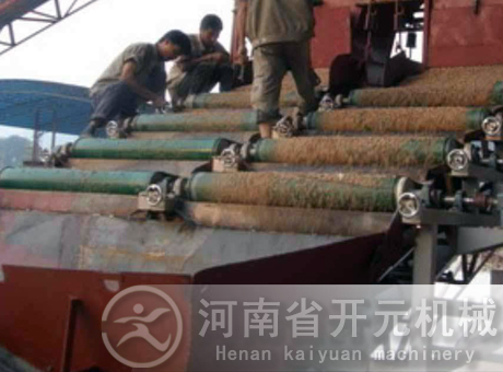 我公司下屬的旱地鐵砂干式磁選機團隊專業(yè)生產(chǎn)旱地鐵砂干式磁選機,也可叫做鐵砂磁選旱船,該機具有處理量大,效率高,易于維修等優(yōu)點,與濕式磁選機不同之處在于,該機為干式選礦,解決了旱地鐵砂礦難處理的問題。本機械為被動移動式地面篩沙,篩石子專用機械,機械上料。每小時處理原料60-120立方米,配柴油機或電動機。